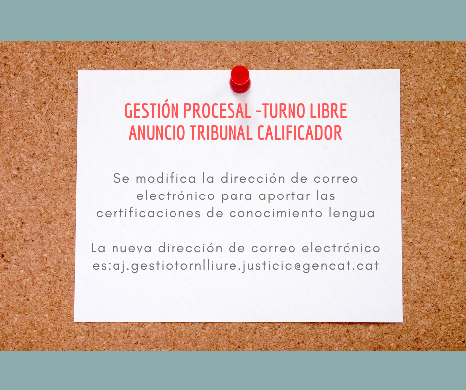 El Tribunal Calificador Único publica un anuncio por el que se modifica la dirección de correo electrónico facilitada para la aportación de las certificaciones acreditativas de los conocimientos de lengua oficial en PDF para el ámbito de Cataluña.